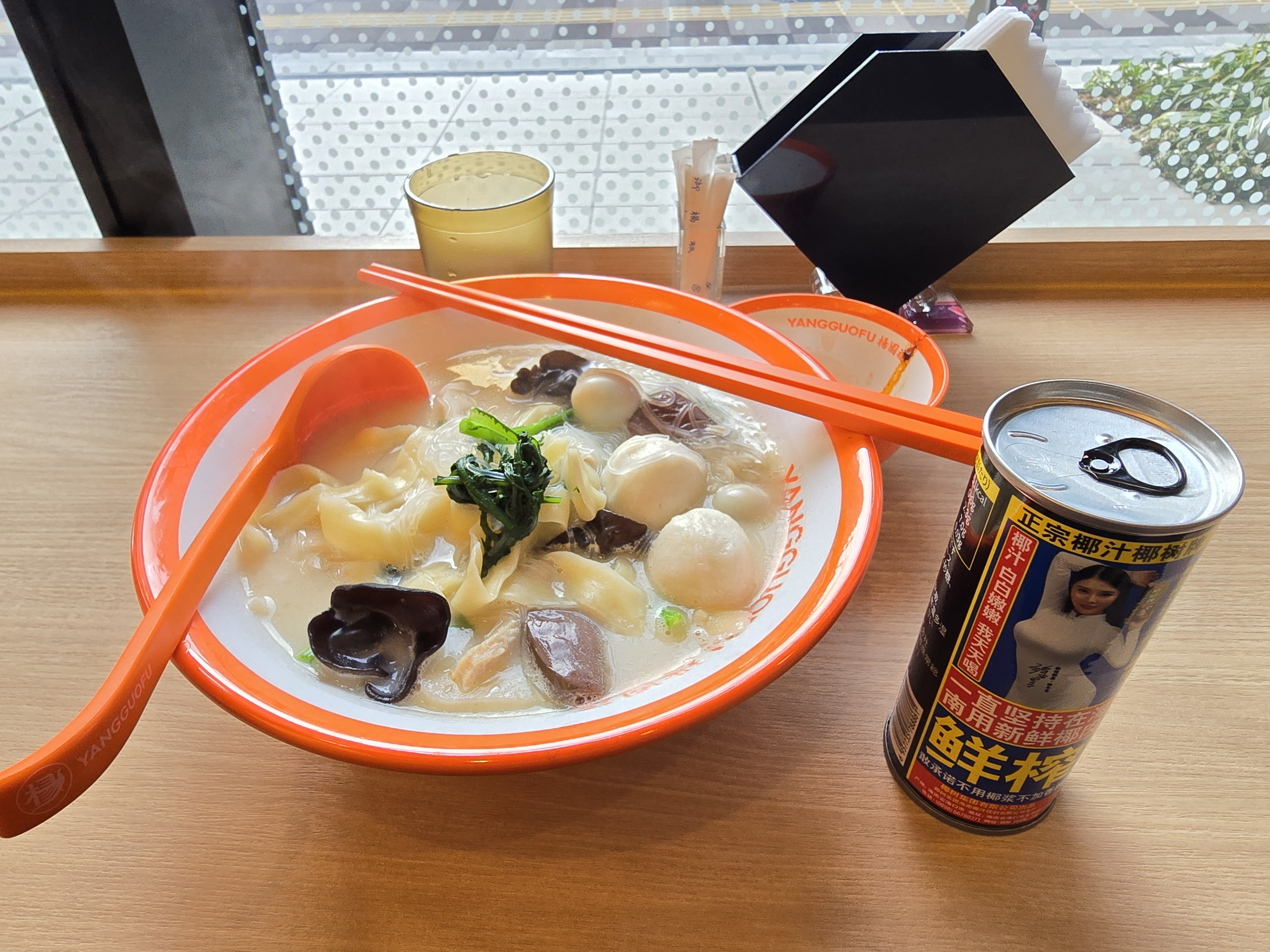 そして、右側に写っている黒い缶にご注目ください。 これは「椰樹牌(イエシュー)」という、中国ではとても有名なココナッツジュースです。 刺激の強い中華料理をココナッツの優しい甘さがスッと中和してくれるので、セットで頼むのがおすすめです。