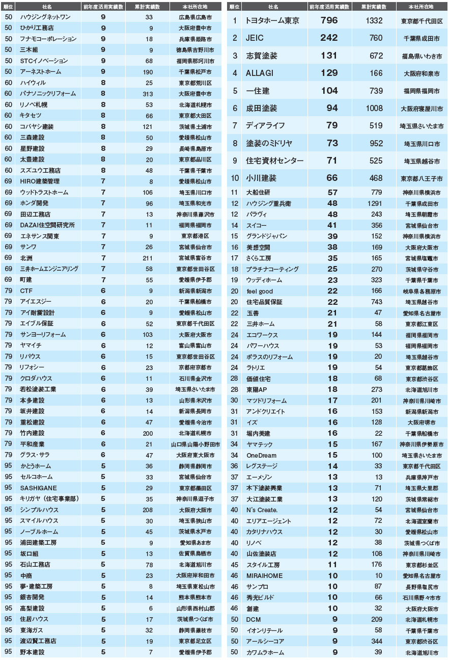 【瑕疵担保保険活用ランキング】リフォーム産業新聞